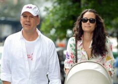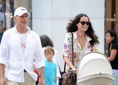Brūss Villiss ar sievu Emmu Hemingu un vecāko meitu Rūmeru