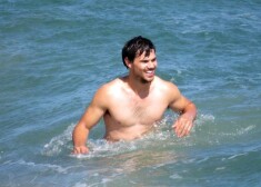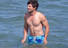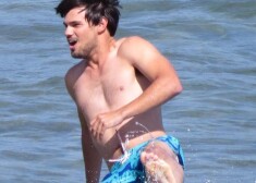 Filmas "Krēslas" zvaigzne Teilors Lautners Kalifornijas pludmalē