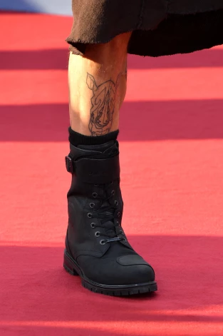 Brūnos zemes toņos ieturēto koptēlu aktieris bija papildinājis ar daļēji aizpogātu kreklu, vairākām smagnējām kaklarotām un motociklistu zābakiem. Pateicoties neparastajai apģērba izvēlei, fani varēja novērtēt aktiera bagātīgo tetovējumu kolekciju, kas rotā viņa kāju apakšstilbus.