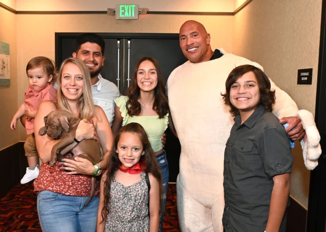 Dveins Džonsons piepilda fanu ģimenes sapni, uzdāvinot viņiem suni
