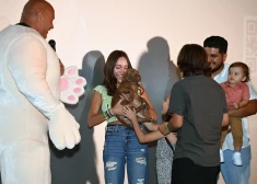 Prieka asarām acīs Hernandesi uzlūkoja savu jauno četrkājaino draudziņu un iepozēja selfijiem kopā ar slaveno aktieri.