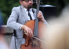 Čellu trio "Melo-M" ar ukraiņu mūziķiem uzstājas pie Brīvības pieminekļa