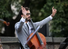 Rīgā, pie Brīvības pieminekļa, uz tilta Latvijas Nacionālās operas un baleta pusē trešdien plkst.16.30 un 18 uzstājās čellu trio "Melo-M" ...