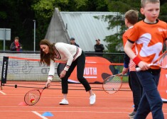 Hercogiene Ketrīna viesojas Skotijā un uzspēlē ar bērniem tenisu