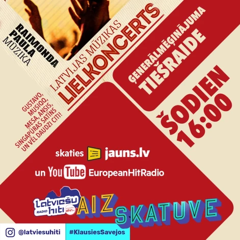 Šodien, 30. augustā, Radio Latviešu hiti aicina ielūkoties Lielkoncerta ģenerālmēģinājuma aizkulisēs! Smiekli, sarunas un Raimonda Paula dziesmas būs skatāmas tiešraidē portālā Jauns.lv. Svarīgi gan atgādināt, ka šis ir ievads gaidāmajam 10. septembra koncertam Daugavas stadionā, kad Rīgu pieskandinās nebijuša mēroga pasākums “Latvijas mūzikas lielkoncerts”, kurš uz lielās skatuves vienos teju 100 māksliniekus, kuri izpildīs īpaši šim notikumam radītas, tautā mīlētu komponista Raimonda Paula skaņdarbu aranžijas.