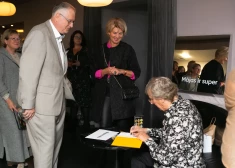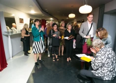 Ļaudis ierodas uz Zigmara Liepiņa grāmatas "Mūzaīka" atklāšanas svētkiem