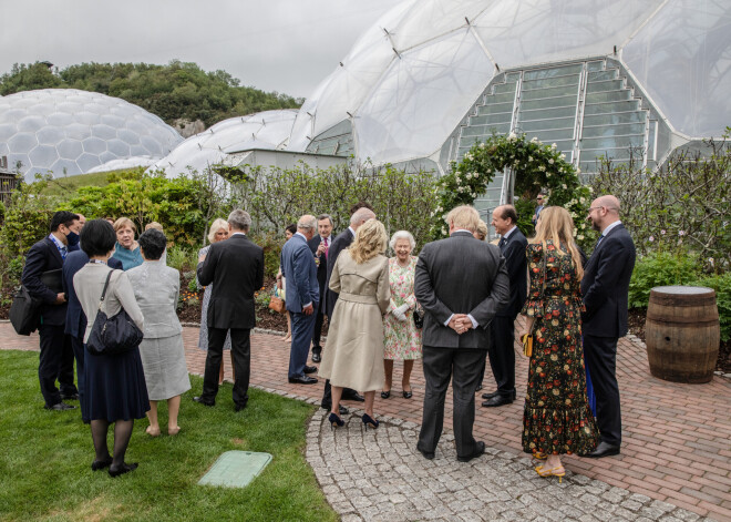 Britu karaliskā ģimene un lielvalstu līderi pieņemšanā “Ēdenes projekta” botāniskajā dārzā Kornvolā