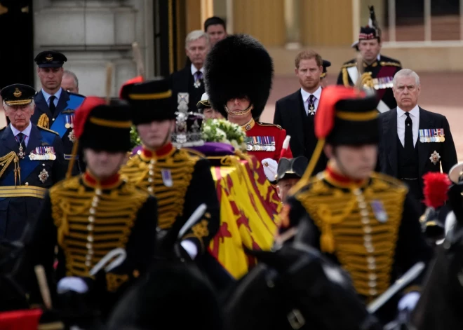 Londonas centrā trešdien sapulcējās desmitiem tūkstošu cilvēku, lai vērotu karalienes Elizabetes II zārka pārvešanu no Bakingemas pils uz Vestminsteras zāli. ...