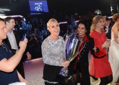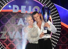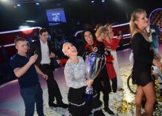 Šova "Dejo ar zvaigzni 4" uzvarētāji Liene Greifāne un Viktors Haritonovs svin uzvaru