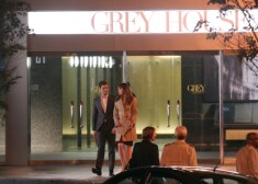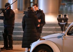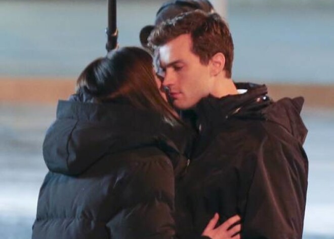 Džeimijs Dornans un Dakota Džonsone filmas „Greja piecdesmit nokrāsas” uzņemšanas laukumā