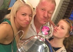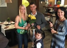 “Dejo ar zvaigzni 4” čempioni Liene Greifāne un Viktors Haritonovs ar ģimeniskām svinībām Arņa Bikšus restorānā atzīmēja ceļojošā kausa nodošanas ...