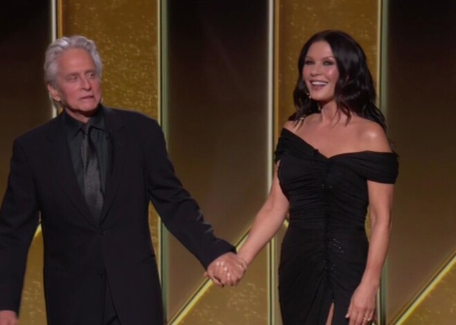 Ketrīna Zeta-Džounsa un Maikls Duglass attālināti rīkotajā “Zelta globusu 2021” ceremonijas vakarā