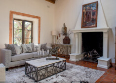 Īpašumā, kas aizņem 1.6 hektāru, ir koku ieskauts pagalms, krāsainu flīžu dekorēta strūklaka un āra kamīns. Savukārt nepilnu 650 kvadrātmetru lielajā mājā ir sešas guļamistabas ar „en-suite” vannasistabām, kā arī atsevišķi apartamenti apkalpojošam personālam.