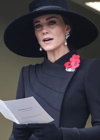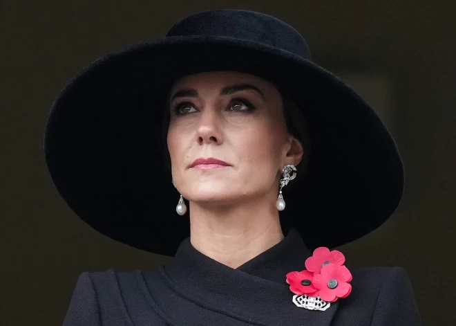 Tērpusies melnā, princese Ketrīna svētdien pievienojās karaliskajai ģimenei Atceres dienas pasākumā. Viņas mēteli rotāja ne tikai trīs magones, kas simbolizē kritušos karavīrus. Apģērbu papildināja arī kāda skaista un līdz šim neredzēta piespraude ar briljantiem.