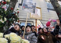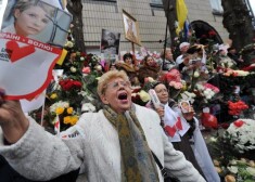 Tūkstošiem cilvēku pie cietuma svin Timošenko dzimšanas dienu.