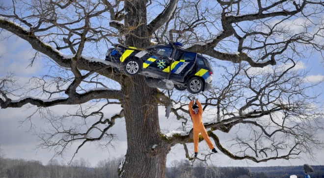 Lai arī teju visu mūsdienās var dabūt gatavu datorā, šis ir pa īstam! Filmēšanas vajadzībām mašīna nudien tika uzrauta kokā un darbība norisinājās tieši tur.