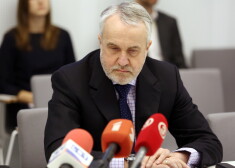Ekspolitiķis Andris Šķēle, Ventspils mērs Aivars Lembergs un Latvijas Hokeja federācijas ģenerālsekretārs Viesturs Koziols piedalās Saeimas Parlamentārās izmeklēšanas komisijas par ...