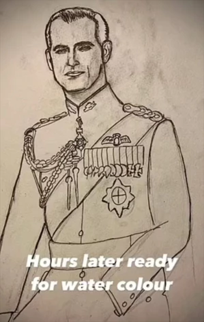 Laiems Peins saviem sociālo tīklu sekotājiem parādīja video, kurā redzama šī glezna, kas tapusi akvareļa tehnikā. Princis Filips tajā ir redzams ģērbies savā armijas uniformā.
