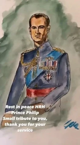 Pie gleznas viņš pierakstījis: “Dusiet mierā, Viņa Karaliskā Augstība, princi Filip. Neliels veltījums jums, paldies par kalpošanu!”