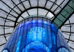 16.12.2022. Berlīnes viesnīcā saplīsa pasaulē lielākais cilindriskais akvārijs Aquadom
