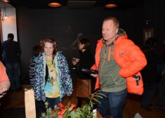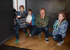 Arnis Bikšus ar bērniem apmeklējot Aivara Vilipsōna izstādi un grāmatas prezentāciju 2015. gada 17. aprīlī.