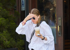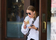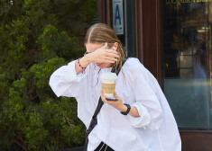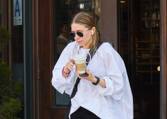 Tveicīgai dienai Ņujorkā bijusī seriāla „Pilna māja” zvaigzne Ešlija Olsena izvēlējusies apjomīgu balonveida blūzi ar garajām piedurknēm.