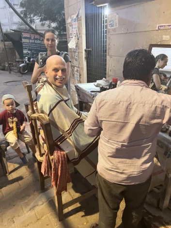 Viens no pirmajiem rituāliem, ko Uģis paveica Indijā, – uz ielas izmantoja friziera pakalpojumus un noskuva sev matus.
