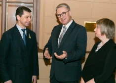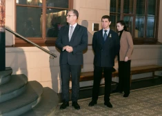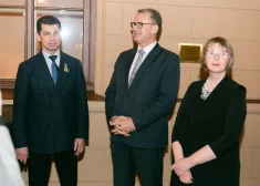 FOTO: ļaudis ierodas uz ukraiņu mākslinieka Ivana Marčuka personālizstādes "Pārtrauktais dialogs" atklāšanu