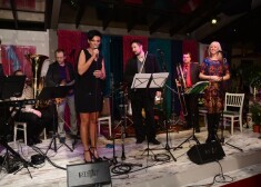 Aktieri līksmo Ievas Pļavnieces kluba jubilejas svinībās. FOTO