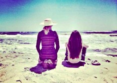 Madonna atpūšas pludmalē ar bērniem un savu tēvu