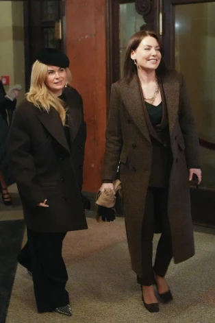 Sabīne Glezere: “Žēl, ka mēteļa dēļ nav redzams pilnībā viss tēls. Bet tas, kas ir redzams, izskatās skaisti un akurāti, īpaši brīnišķīgie pērļu aksesuāri.”