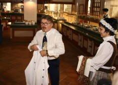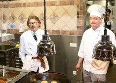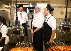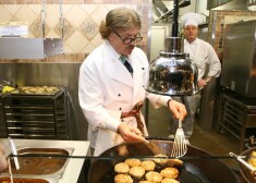 Gunārs Ķirsons pie plīts savā uzņēmumā „Lido Domina” atklāšanā.