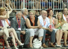 Latvijas-Grieķijas basketbola spēle, kuru vērot bija ieradušās vietējās prominences