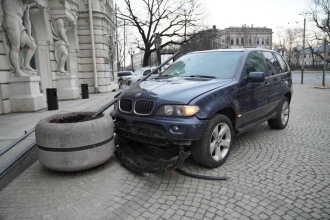 Sadauzīts BMW džips pie Nacionālā teātra, bet tas vēl nav viss. Trakākais redzams iekšā. FOTO