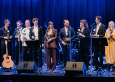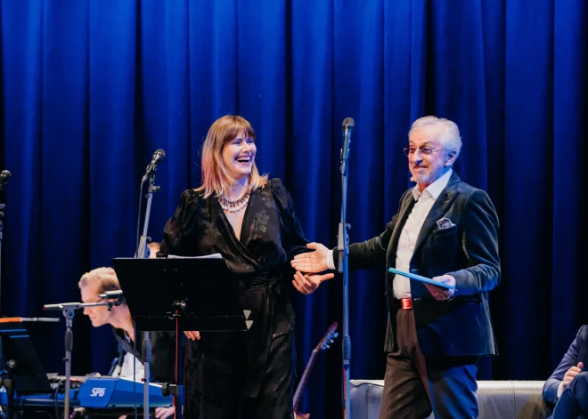 FOTO: Valmieras teātra aktieri priecē ar muzikālu uzstāšanos Dzintaru koncertzālē
