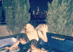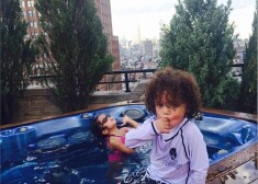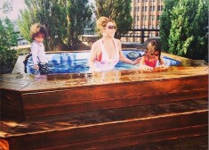 Meraija Kerija ar bērniem plunčājas uz jumta karstā vannā