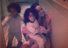 Dziedātāja Meraija Kerija ar dvīņiem Morokanu un Monro
