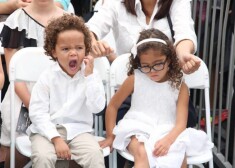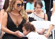 Dziedātāja Meraija Kerija paņēmusi līdzi savus 4 gadus vecos dvīņus Morokanu un Monro uz ceremoniju, kurā viņai piešķirta zvaigzne Holivudas ...