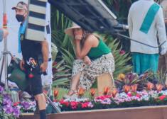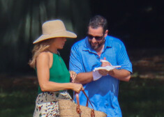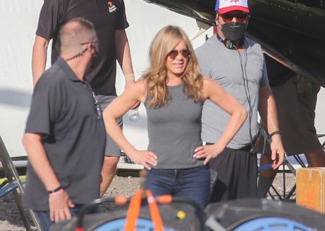 Dženifera Anistone filmas “Murder Mystery 2” uzņemšanas laukumā 2022. gada sākumā