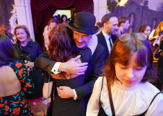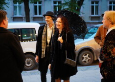 Aktieris Kaspars Zvīgulis ar meitu Žaneti filmas "Wild East. Kur vedīs ceļš" pirmizrādē 2021. gada oktobrī.