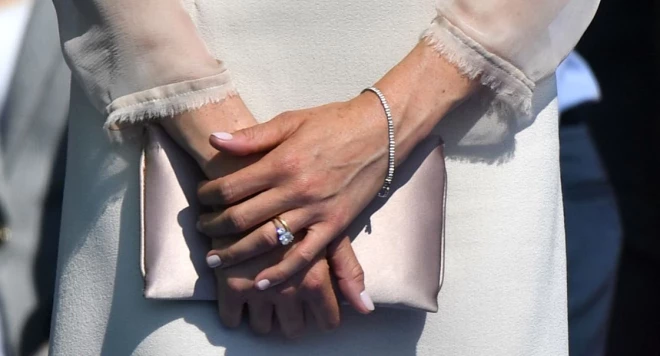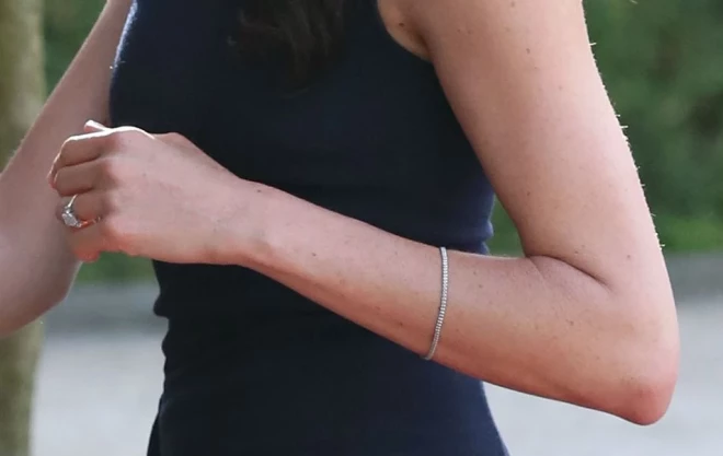 Čārlzs Meganai rotaslietu bija pasniedzis kāzu priekšvakarā. Juvelierizstrādājuma autors ir zīmols “Bentley & Skinner”. Rokassprādze darināta no 92 apaļas formas briljantiem, kuru svars sasniedz divus karātus. Dārgakmeņi iestrādāti baltajā zeltā.