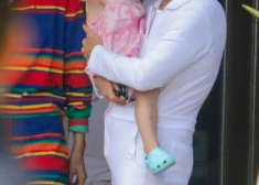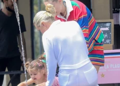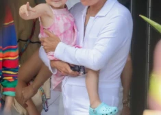 Irina Šaika un Bredlijs Kūpers ar meitu