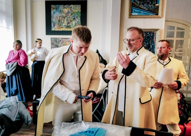 Seriāla "Kolektīvs" par Dziesmu un deju svētku dalībniekiem epizodes "Maukurs un zivs" uzņemšanas aizkulises.