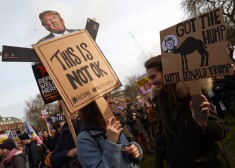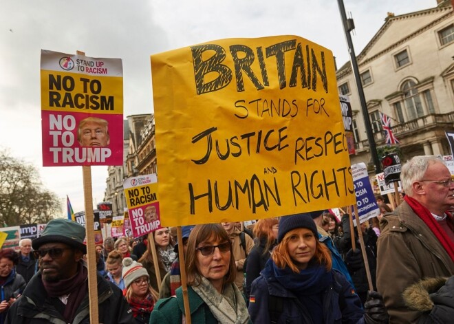 Desmitiem tūkstoši cilvēki Londonā protestē pret Trampu