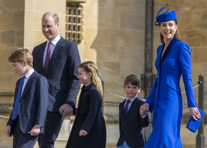 Princese Šarlote un princis Džordžs ar vecākiem apmeklē Lieldienu dievkalpojumu Vindzorā 2022. gadā