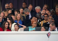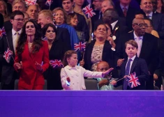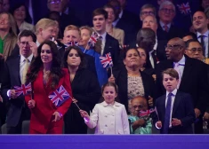 Velsas princis un princese ar vecākajiem bērniem vēro karaļa kronēšanai veltīto koncertu