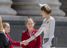 Holivudas zvaigzne Andželina Džolija Svētā Paula katedrālē Londonā Svētā Miķeļa un Svētā Jura ordeņa 200 gadu svinībās.