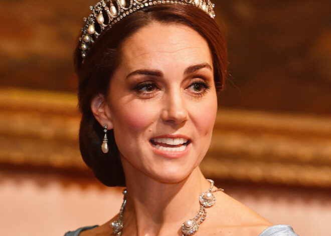 Kembridžas hercogiene Ketrīna pirmo reizi uzliek princeses Diānas mīļāko kroni