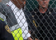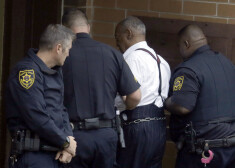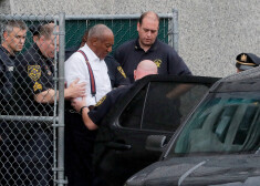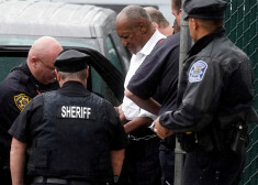 ASV komiķis Bils Kosbijs tiesas zāli pamet rokudzelžos