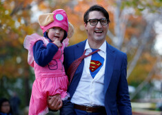 Kanādas premjerministrs Džastins Trudo Halovīnā iejūtas Supermena tēlā